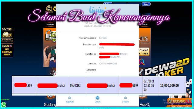 Selamat Kepada Member Setia GudangQQ WD sebesar Rp. 10.000.000.-